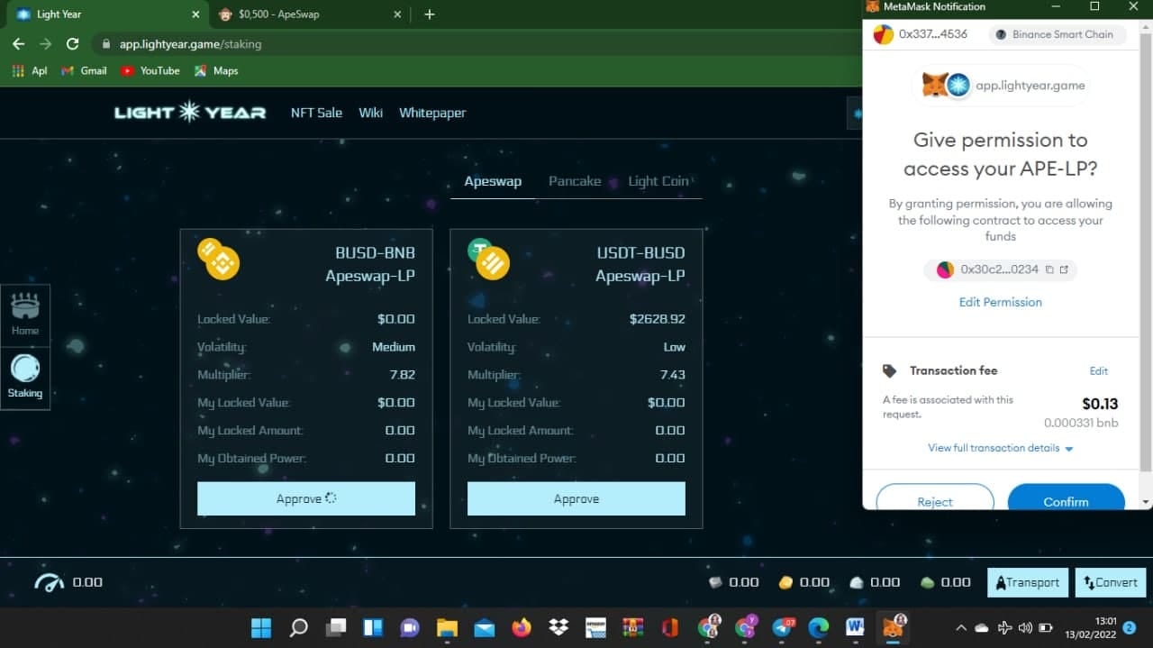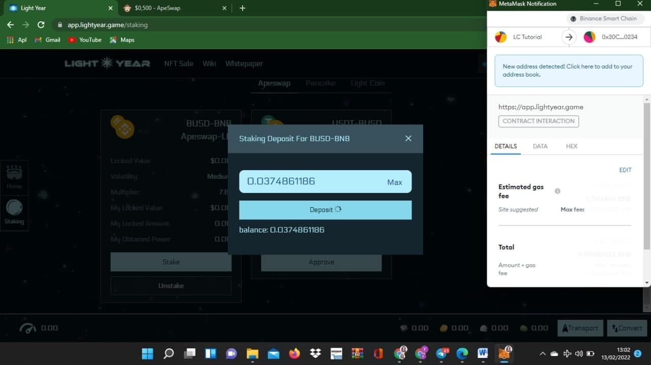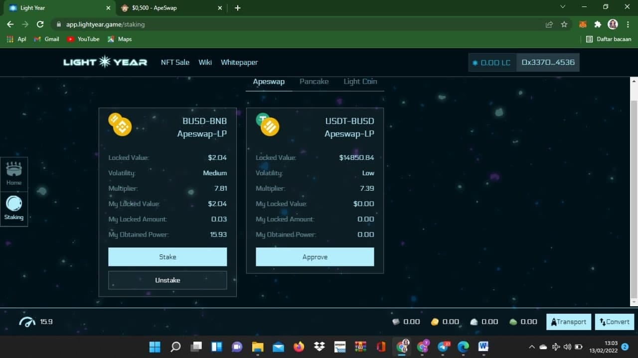 Step 3: Staking BNB/BUSD or USDT/BUSD to earn LC.