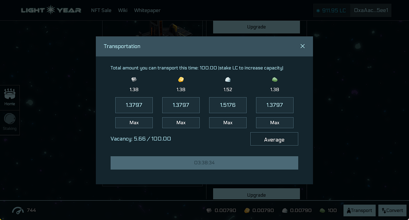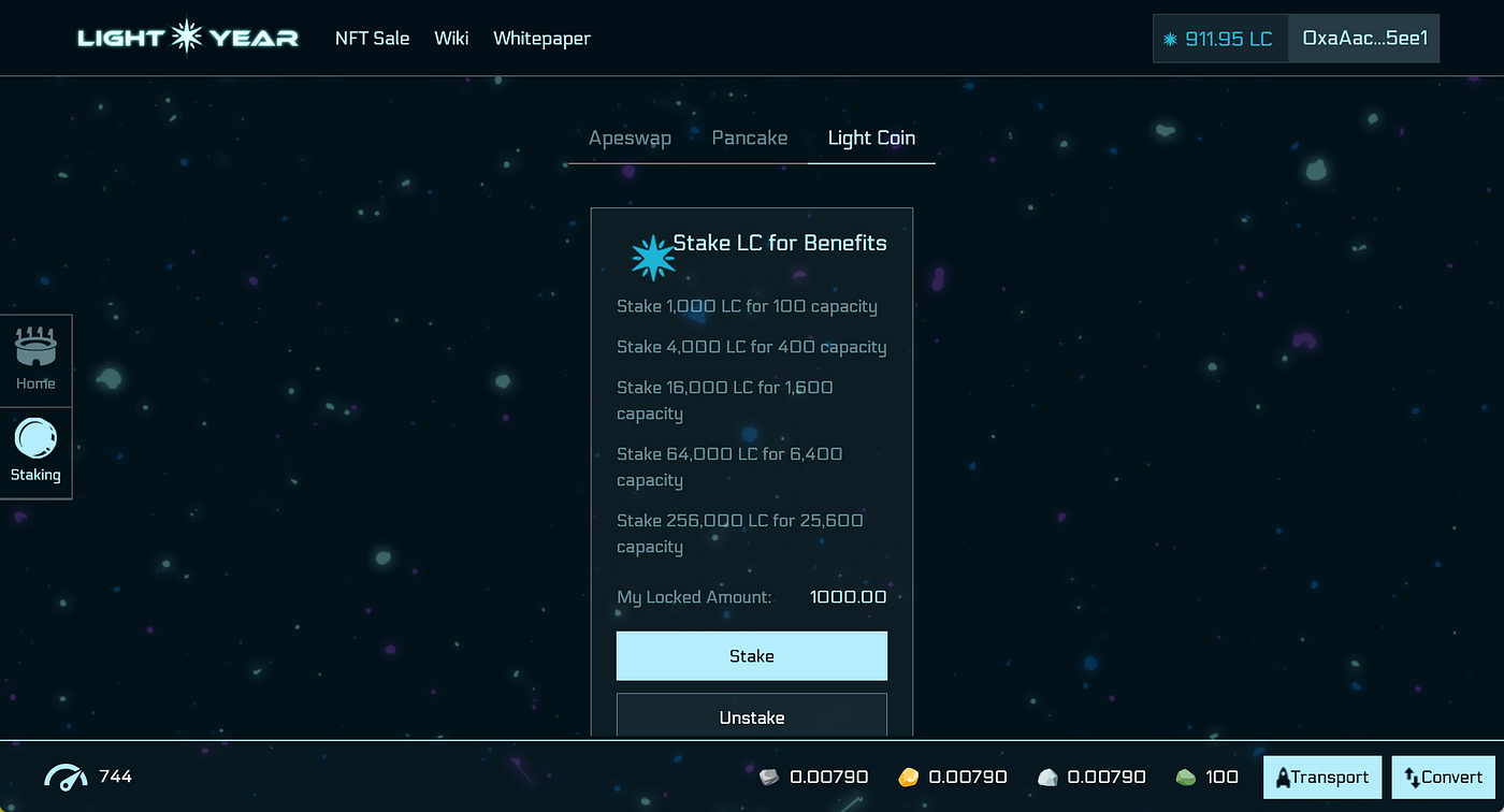 Step 6 : (Optional) Stake LC to increase the tranporting capacity.