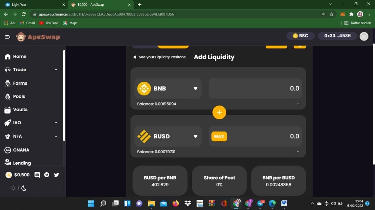 Step 2 : Staking by using Pair BNB/BUSD or USDT/BUSD