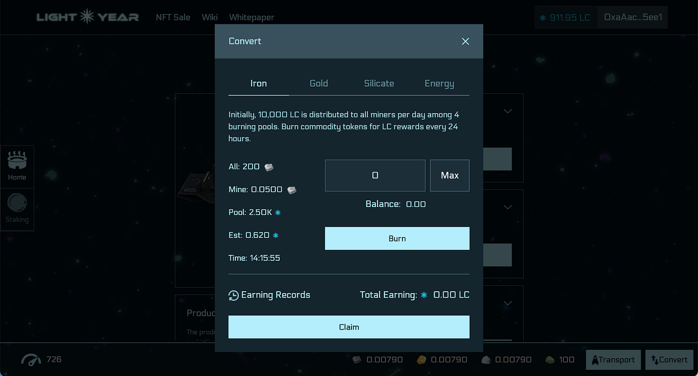 Step 7 : Burn commodity tokens (in your wallets) to earn LC tokens every 24 hours.